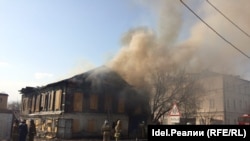 Сегодня днем загорелось здание фабрики Крестовниковых на берегу Кабана, оно входит в реестр памятников республиканского значения.