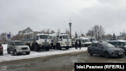 Рядом с площадью Тысячелетия припаркованы несколько полицейских автозаков. Перед площадкой пока не больше 30 человек.