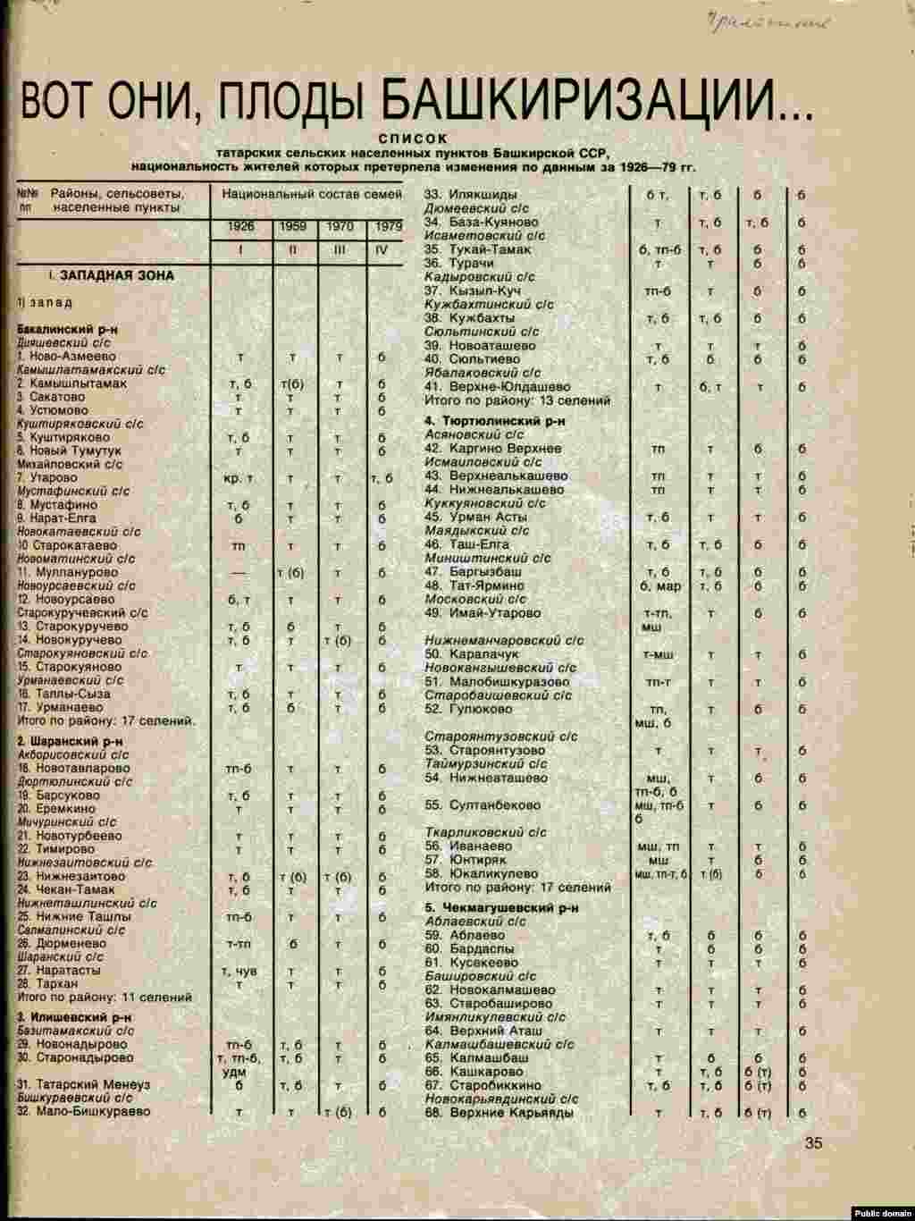 Список татарских сельских населенных пунктов Башкирской АССР, национальность жителей которых претерпела изменения по данным за 1926-1979 гг.