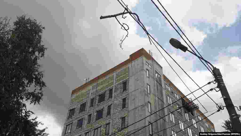 В 2010-м мэрия каким-то образом передала застройщику часть придомовых территорий соседних домов — а в 2017-м отозвала разрешение на строительство высоко поднятой "свечки". Но дальше этого дело не продвинулось: здание и не достраивают, и не сносят. Сейчас прокуратура пытается вернуть окруженную забором территорию в распоряжение города — но проигрывает суды.