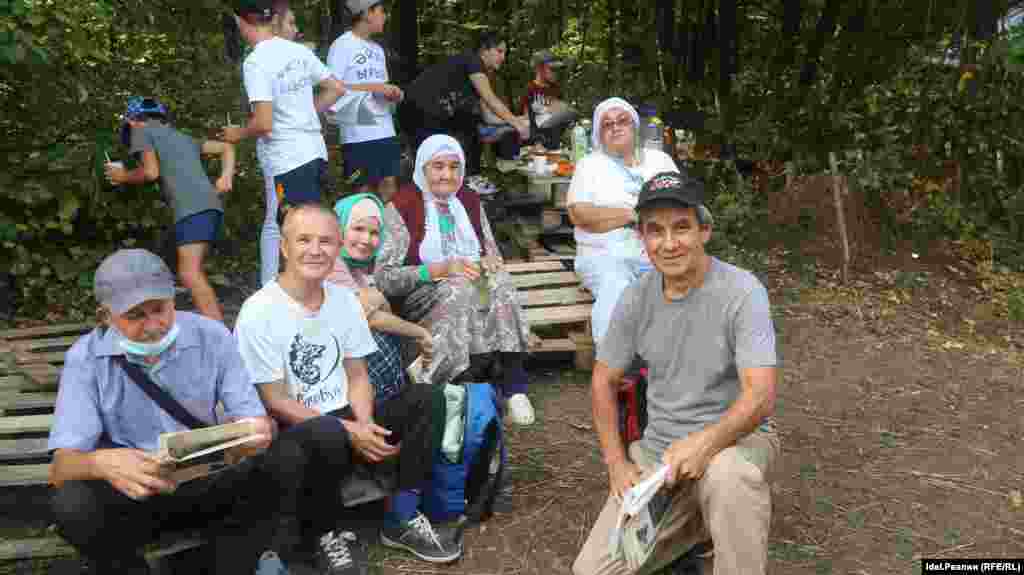 Часть активистов устроила, наконец, экологический субботник — от БСК на горе осталось много мусора. После уборки люди поднимаются на вершину Куштау, откуда видны огромные "белые моря" — шламохранилища БСК, до краев заполненные отходами содового производства. Чуть дальше, в дымке промышленных выбросов едва виднеется Стерлитамак. А под горой — красивейшая долина реки Белой — Ак-Идели.