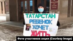 На пикет вышли Елена Кузнецова из Набережных Челнов, мама шестилетней Арины Дудкиной, и Марат Аблатипов из Нижнекамска, папа двухлетнего Амина.
