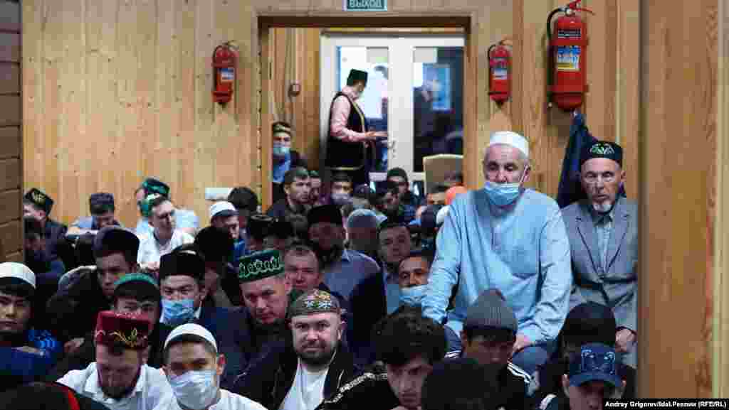 Верующие начали собираться в "Гадел" с пяти утра. Двухэтажное деревянное здание расположено на южном выезде из Казани у РКБ. За последние годы здесь разрослись жилые микрорайоны — Солнечный город и Ферма-2. Поэтому места внутри люди спешат занять заранее. Ближе к шести оба этажа здания оказались забиты, часть верующих расположилась на молитву во дворе. По оценкам имам-хатыйба мечети Рустема Бакирова, на праздничную молитву собрались не менее 700 человек.