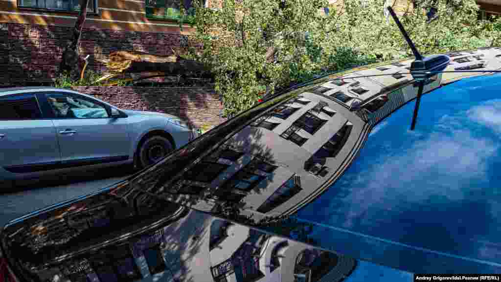 Свидетелем разбора завалов на фешенебельной улице Бассейная, спускающейся от Малой Красной к Пушкина мимо Верховного суда Татарстана, стал корреспондент "Idel.Реалии". Здесь дерево рухнуло сразу на несколько припаркованных у тротуара машин.