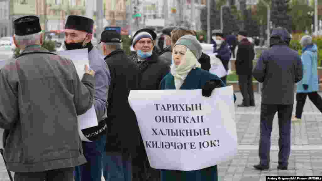 В этот раз активисты ВТОЦ решили не дожидаться даты и провели массовый пикет в защиту Хәтер көне у театра Камала. В акции участвовали полтора десятка человек.