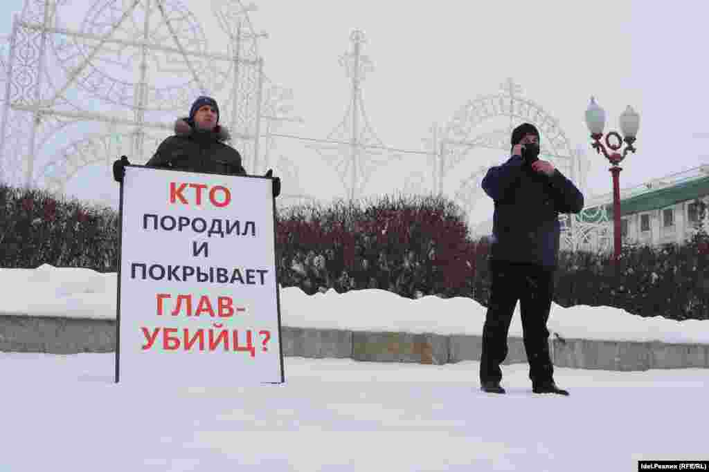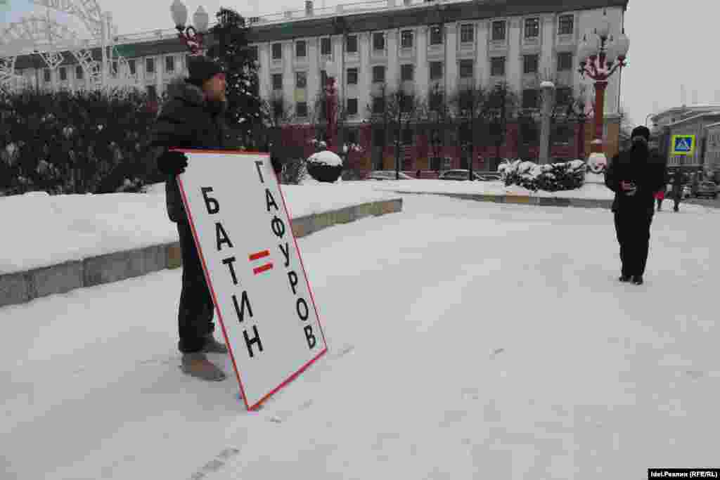 Житель Зеленодольска Алексей Соловьёв 12 января провёл одиночный пикет на площади Свободы в Казани. В руках он держал двусторонний плакат, на одной стороне которого была надпись "Кто породил и покрывает глав-убийц?", на второй — "Батин = Гафуров". Соловьёв провёл параллели между нашумевшим делом ректора КФУ Ильшата Гафурова и своей собственной историей.
