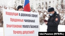 31 января депутат Зеленодольского горсовета Евгений Ефремов провел на площади Свободы в Казани одиночный пикет. Народный избранник развернул напротив Кабмина РТ плакат "Коррупция в дорожной сфере! Продажные чиновники! Уничтожение малого бизнеса! Почему допустили?!"