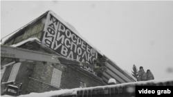 — Я уже пошёл обедать. Гляжу, опять люлька подъехала. Выхожу с ведром с водой, говорю: "Вот только они полезут в люльку, я им сразу холодный душ сделаю, если они решили красить!" И тогда в люльку залезли двое спецназовцев, поднялись, выходят на крышу... Чувствую, за разговорами приближаются ко мне… Я в окошечко — и домой! Окошечко закрыл, а они так и остались на крыше. Эти наёмники, штрейкбрехеры опять приехали — и гляжу, уже откручивают. Вы же, говорю, только закрасить хотели, а начался демонтаж стены. Молчат… А вы знаете, говорю я уже в конце, вы мне даже хорошо сделали. Смотрите, какие конструкции открылись прекрасные, я уже сейчас пишу новый плакат "Верховный суд РТ — криминальный сброд", на днях я его повешу, и вы увидите, как мне теперь легко вешать его на эти конструкции. Вот как будем действовать теперь: я вешаю, вы в суды, на исполнение приехали — а плакат-то уже снят! Я его теперь даже на ночь буду снимать!..