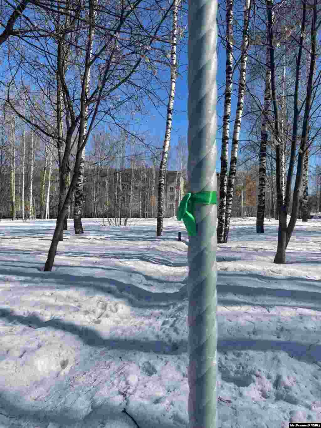 10 апреля по инициативе участников телеграм-чата "Свободный Киров" в областном центре прошёл флешмоб за мир. Кировчане привязывали зелёные ленты как символ мира к различным сооружениям в городе.