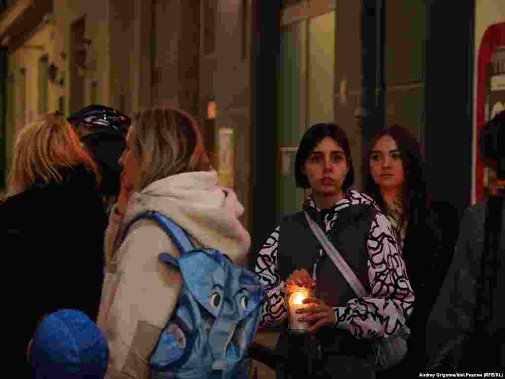 По завершении акции у российского посольства часть протестующих с зажженными свечами переместилась к посольству Украины.