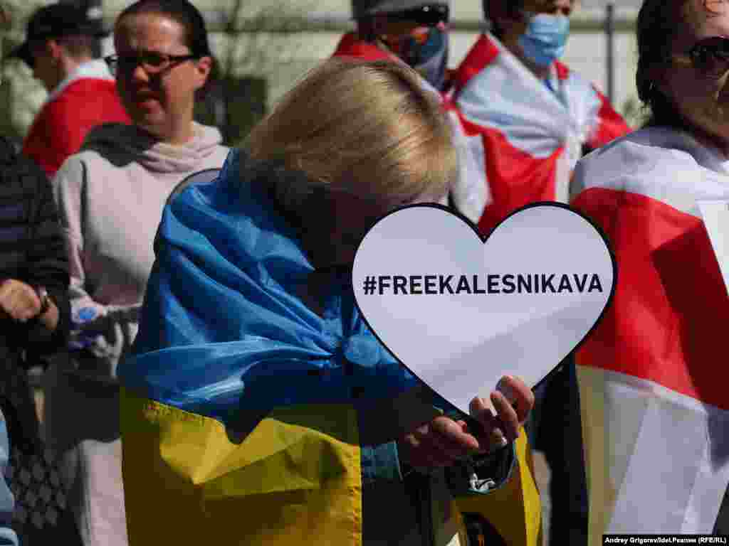Участникам акции раздали сердечки с хештегом #freekalesnikava, эти сердечки люди во время митинга то и дело поднимали высоко над головами.