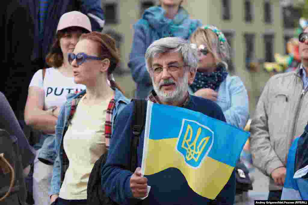 Собралось несколько десятков человек, к акции примкнули и несколько украинцев с белорусами. В этот раз выступающих на митинге не было. Участники митинга выкрикивали лозунги, которые тут же подхватывали остальные. В какой-то момент начали перечислять украинские города и территории, которые сейчас находятся под полной или частичной оккупацией РФ: "Донецк — Украина!", "Мариуполь — Украина", "Крым — Украина!"...