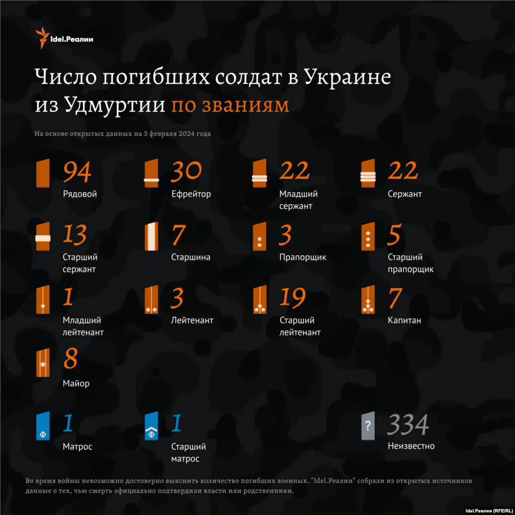 "Idel.Реалии" собрали всю известную на данный момент информацию о погибших на войне в Украине уроженцах Удмуртии — возраст, звания, районы, образование, дети, медали и др.