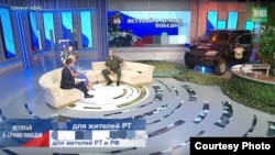 Продукцию своего района в студию принес и глава Алексеевского района Сергей Демидов — домашнюю лапшу, перчатки, свечи. Он также рассказал о регулярных отправках на войну автомобилей, мобильных бань, приборов ночного видения и тепловизоров.