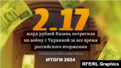 Столица Татарстана направила "на поддержку спецоперации" (так власти РФ обязывают называть полномасштабное вторжение в Украину — "Idel.Реалии") России в Украине около 2,17 млрд рублей, заявил в ноябре 2024 года мэр Казани Ильсур Метшин.