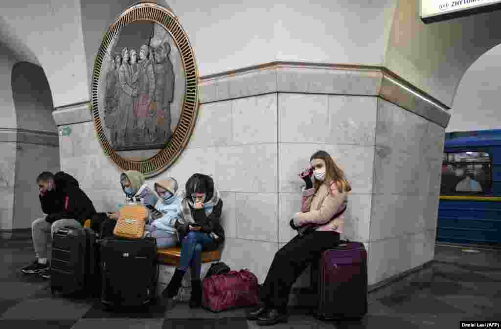 Убежище. Жители Киева прячутся в метро от российских ракет